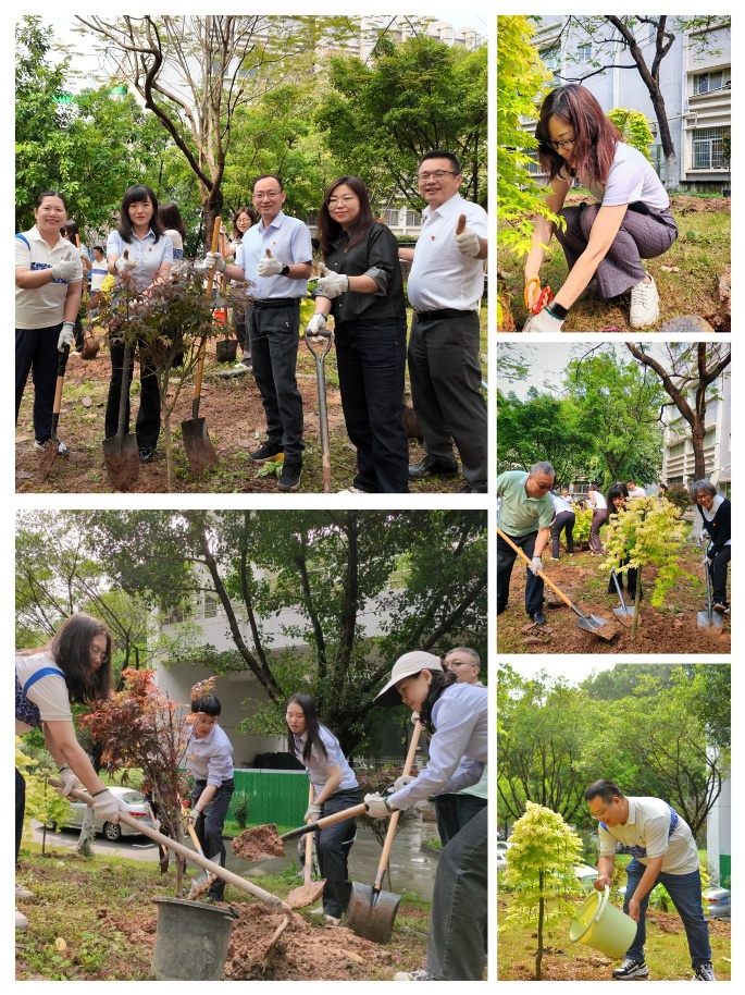 活动现场,大家分工明确、干劲十足、协作高效,有条不紊的分成植绿小分队:大家奋力挥铲挖坑,确保树苗根系舒展空间足够大,扶苗定直、挥锹填土,配合默契,并接力浇水,采用“少量多次”法保障土壤渗透均匀,并逐一检查树苗垂直度、填土紧实度,确保“栽一棵、长一棵”。经过大家“爱绿”劳作,20棵枫叶树苗迎风挺立,为园区增添了绿色盎然生机。